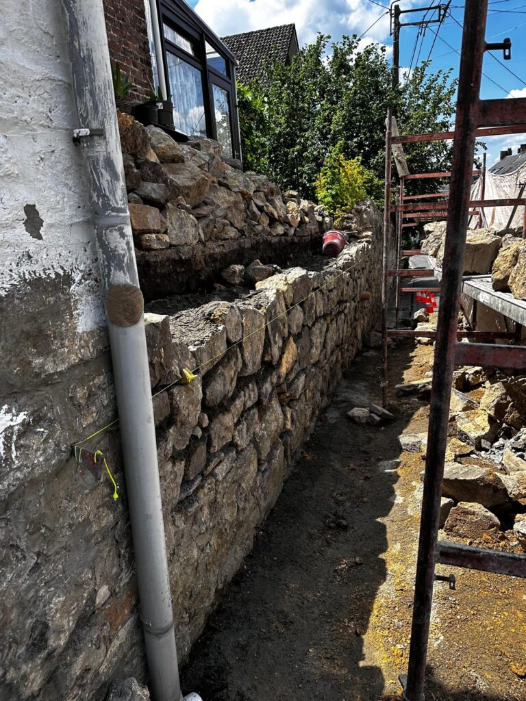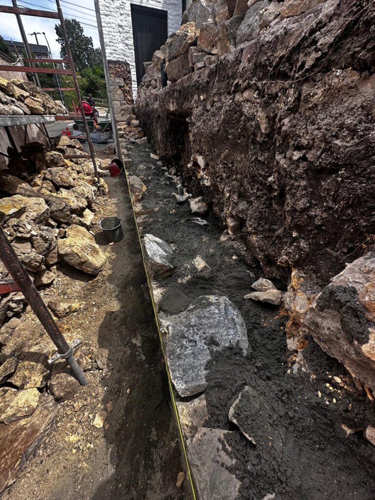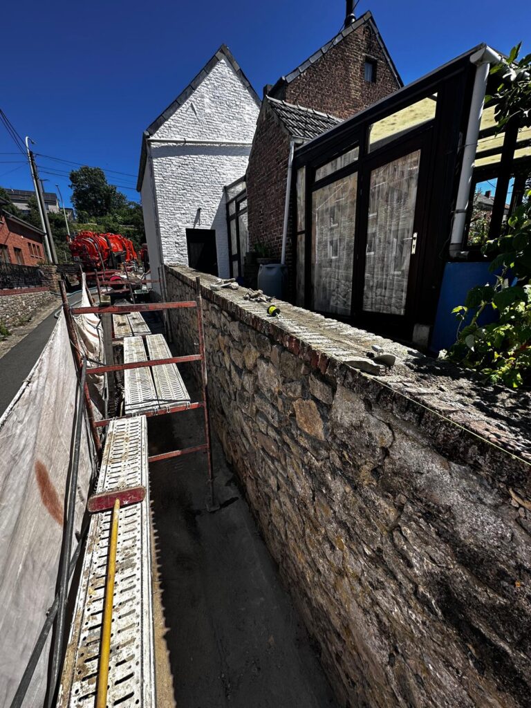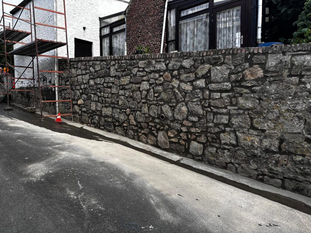L’entreprise Asllani SRL a réalisé des travaux de démolition et de maçonnerie afin de réhabiliter cette structure en pierre. L’intervention a consisté à démonter l’ancien mur en pierre tout en préservant les matériaux réutilisables. Une nouvelle maçonnerie sera réalisée pour renforcer la stabilité et l’esthétique du projet. Les travaux ont été effectués avec précision et dans le respect des normes de construction.