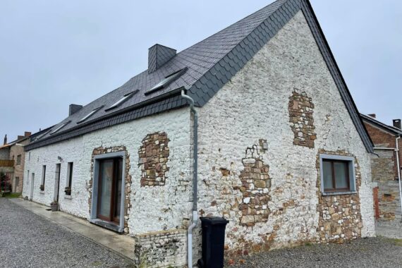 La maison en question fait l’objet d’une rénovation avancée, marquée par plusieurs améliorations visibles tant sur la façade que sur la toiture et les aménagements extérieurs.